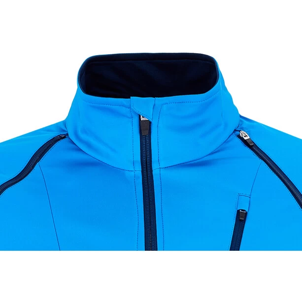 Le softshell utilisé est très respirant. C’est également le cas pour l’ensemble de la veste. L’accumulation de chaleur dans la veste de vélo est ainsi évitée. Il peut être utilisé sans problème comme coupe-vent. La veste de cyclisme dispose d’un col montant. Celui-ci protège le cou du vent de la route.